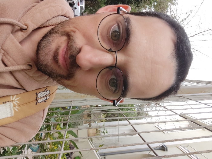 - "An adult male with short dark hair, a short dark beard, and round, dark-rimmed glasses stares directly at the camera in a close-up selfie" by FM-3Ip2o1, licensed under CC BY 4.0