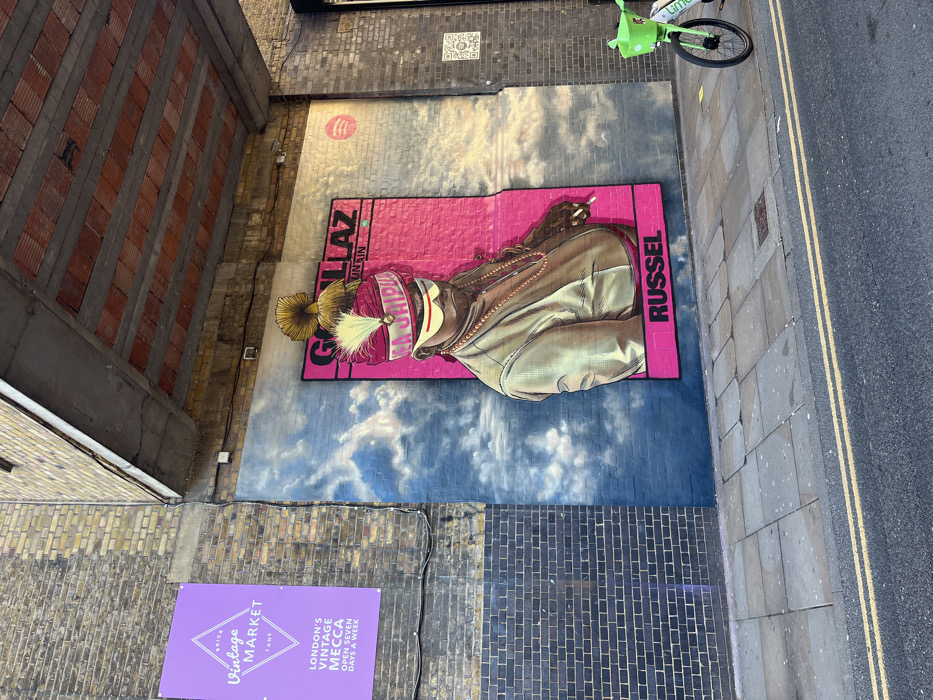 The image displays an urban street scene on Brick Lane, London, United Kingdom