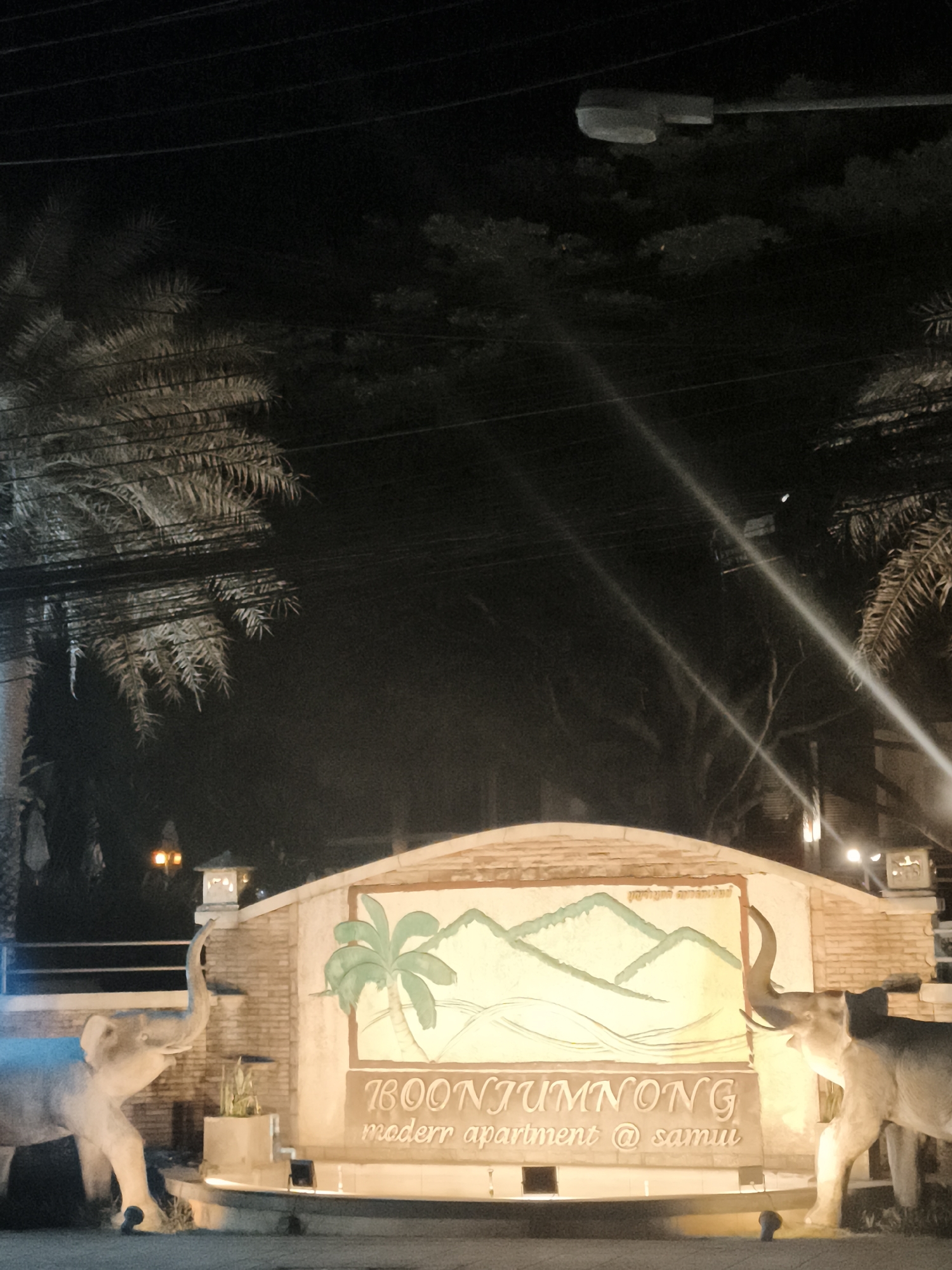 - "Here's a description of the image: The image is taken at night and showcases the "Boonjumnong modern apartment @ Samui" sign, located in Baan Bo Phut, Thailand" by FM-H4hzl2, licensed under CC BY 4.0