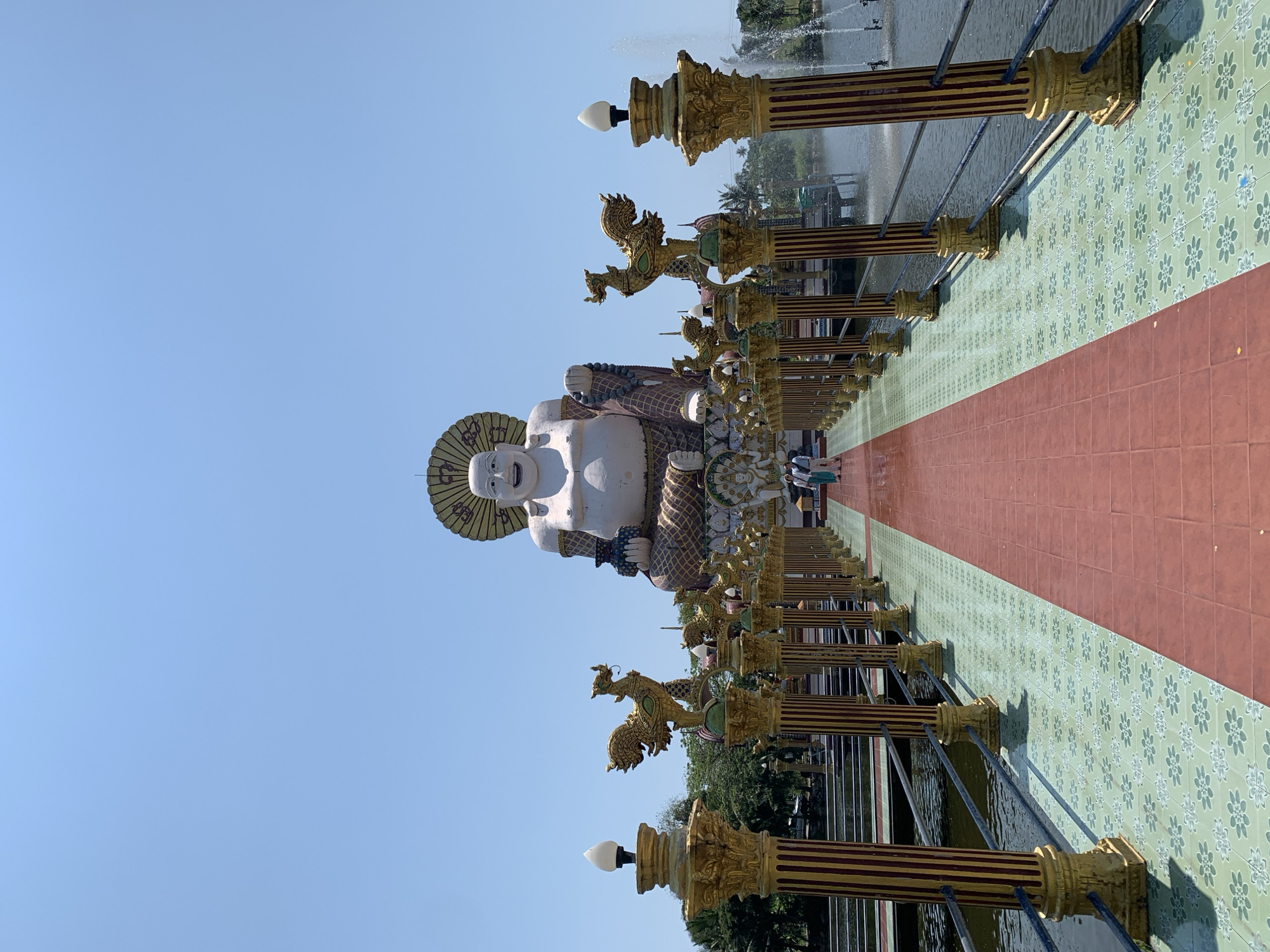 - "This image depicts the large, seated statue of the Laughing Buddha (Phra Sangkhatchai) at Wat Plai Laem temple in Baan Plai Laem, Thailand, under a clear blue sky" by FM-KSqSq1, licensed under CC BY 4.0