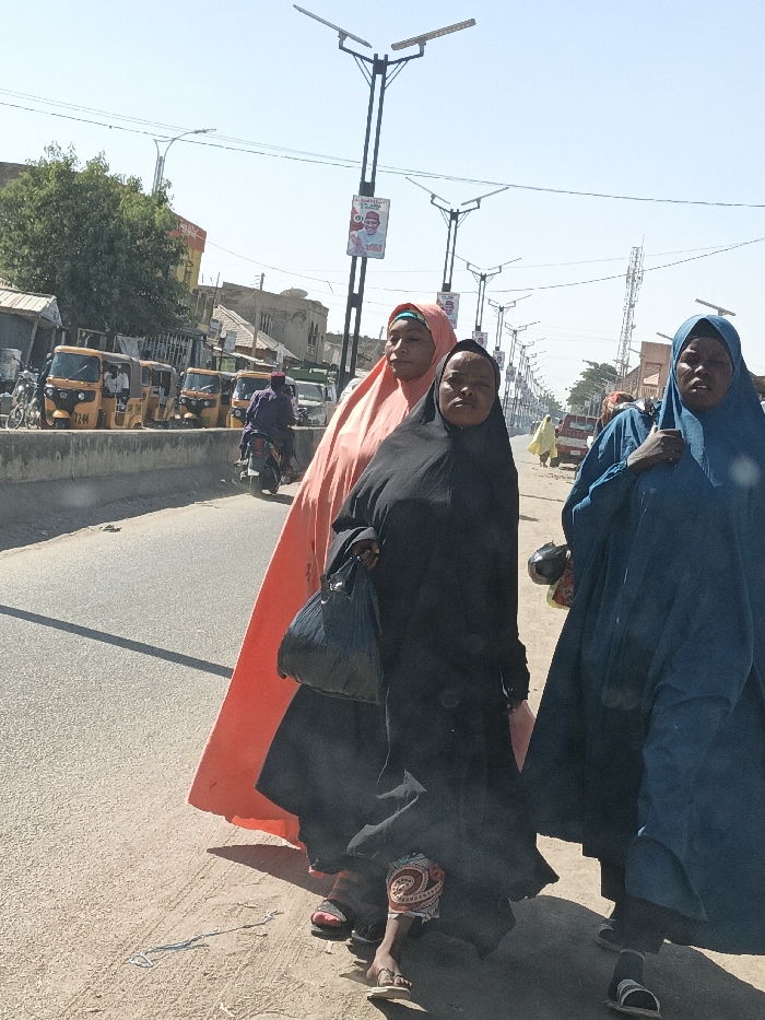 - "Three women walk along a dusty roadside in Gama, Nigeria, under a clear, bright sky" by FM-Bh3W72, licensed under CC BY 4.0