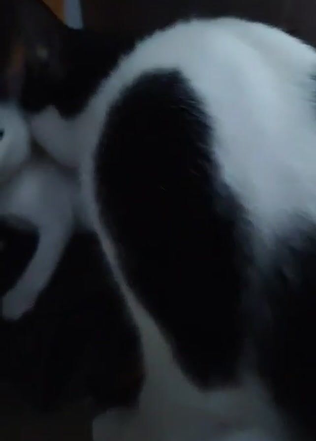 - "A short indoor video shows an adult black and white cat, with its back to the camera" by FM-Fz47q1, licensed under CC BY 4.0