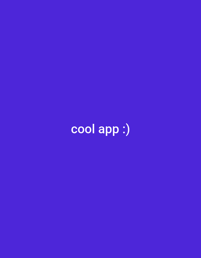 The image displays a solid, uniform purple background. Centrally positioned on this background is white, sans-serif text stating "cool app :)" followed by an emoticon. No individuals are present or depicted. The only discernible subjects are the text and the monochromatic background. No tangible objects, beyond the digital rendering of the text and background pixels, are visible. There are no depicted actions or interactions. The environment is an abstract, digitally rendered canvas of solid color, devoid of any real-world setting. No specific geographical location, including any area within the city of Stockholm, Sweden, can be identified from the visual content of the image.