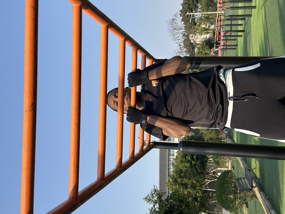- "An adult male is performing an exercise on bright orange metal monkey bars in an outdoor public park in Jiangjin, China" by FM-WUrGn1, licensed under CC BY 4.0