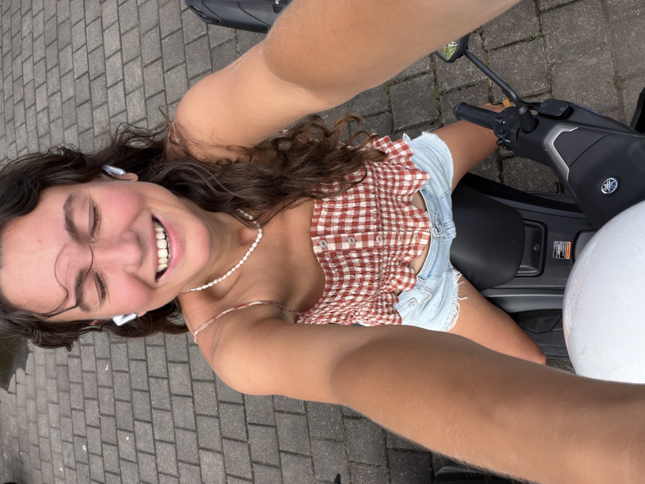 - "A smiling young woman takes a selfie while sitting on a moped" by FM-ytW0x1, licensed under CC BY 4.0
