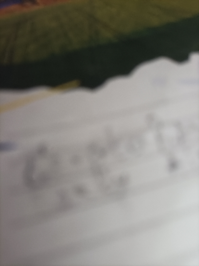 The image is a blurry close-up of a white surface with faint lines, possibly paper, with some darker smudges and the word "Google" faintly visible in the upper center of the image