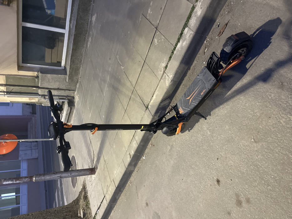 - "An orange and black KUGOO G2 Pro electric scooter, identifiable by its deck branding, stands on its kickstand on an asphalt roadway in Aytos, Bulgaria" by FM-zRH3w2, licensed under CC BY 4.0