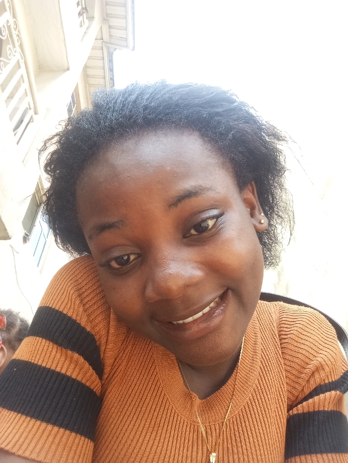 A female individual, appearing to be an adult of African descent, is depicted in a close-up, slightly low-angle shot, presumably taken in Agburu Uke, Nigeria