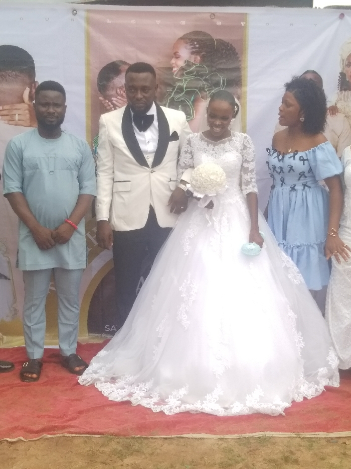 This image captures a group portrait at a celebratory event in Ogbaku, Nigeria
