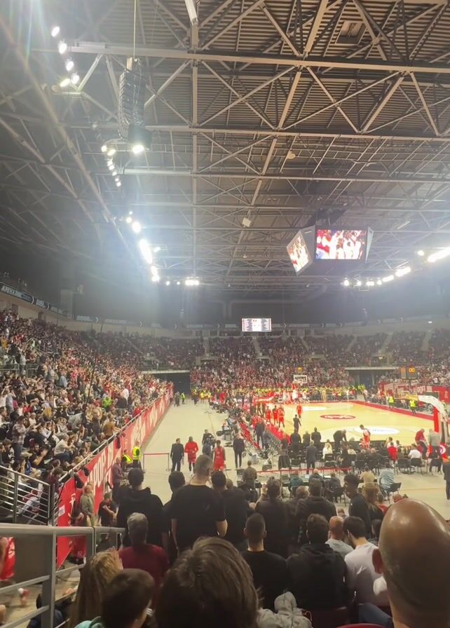 crowded indoor basketball stadium with spectators filling the stands