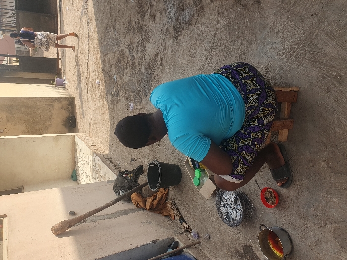 The scene is set in an outdoor, unpaved residential courtyard in Lokoja, Nigeria