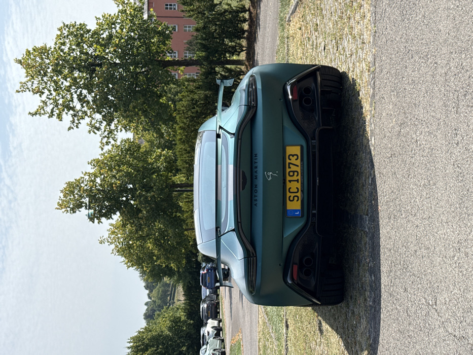 - "The image depicts the rear view of a matte teal Aston Martin sports car parked outdoors in Lenningen, Luxembourg, under a partially cloudy sky" by FM-euyLP2, licensed under CC BY 4.0
