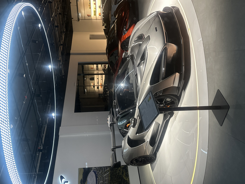 This image displays the interior of a high-end automobile showroom in Glattbrugg, Switzerland