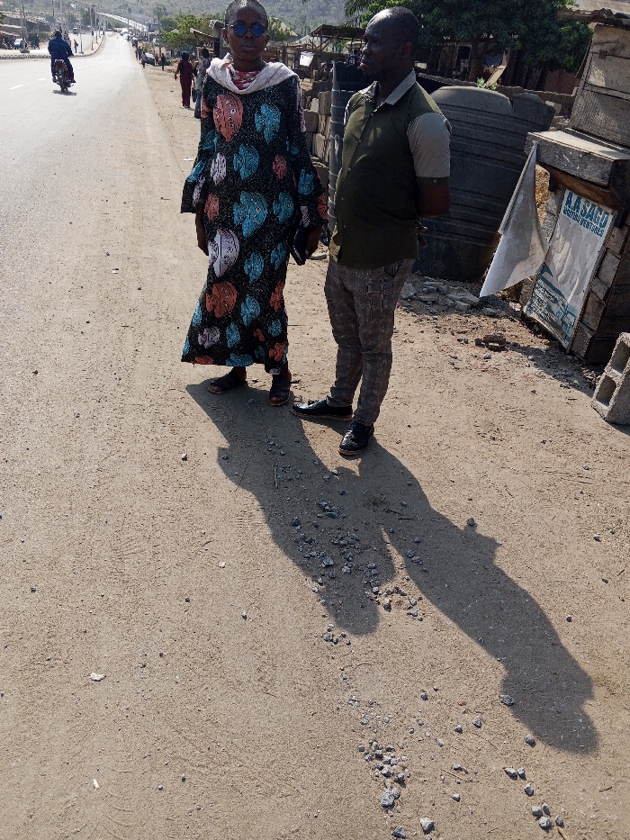 The image depicts an outdoor scene in Zango-ndaji, Nigeria, under bright daylight conditions