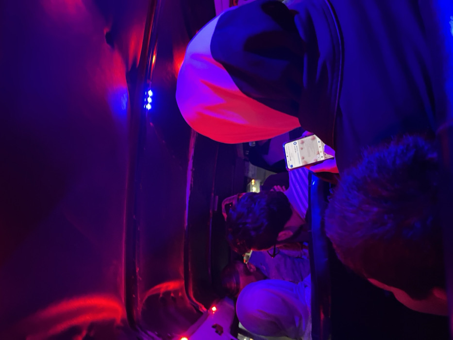 - "The image displays the interior of a vehicle at night in Al-Mazza Municipality, Syria, characterized by intense red and blue ambient lighting" by FM-Mi9R82, licensed under CC BY 4.0
