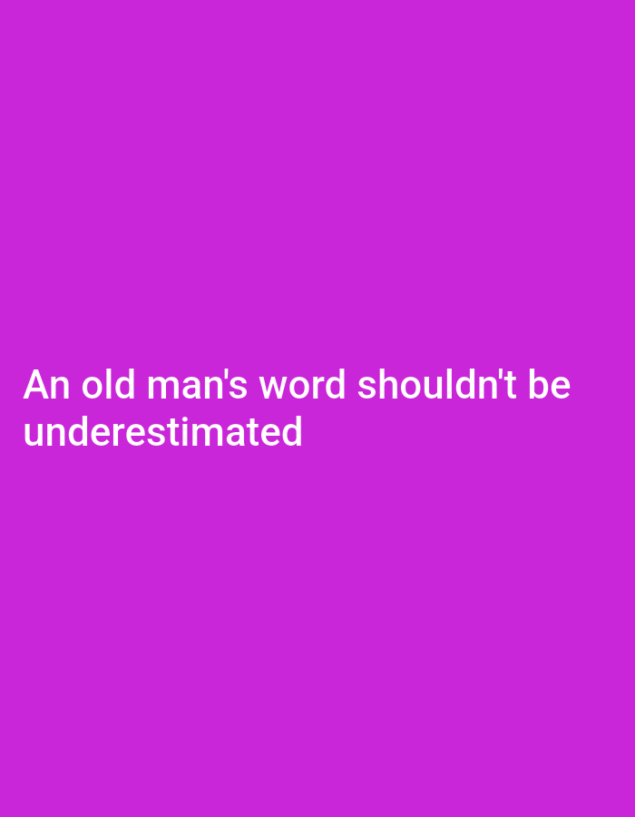 This image, identified as being in Kaninkon, Nigeria, displays a solid magenta background. White sans-serif text is positioned in the lower-left quadrant, stating: "An old man's word shouldn't be underestimated". No other subjects, objects, individuals, or environmental features are depicted within the frame.