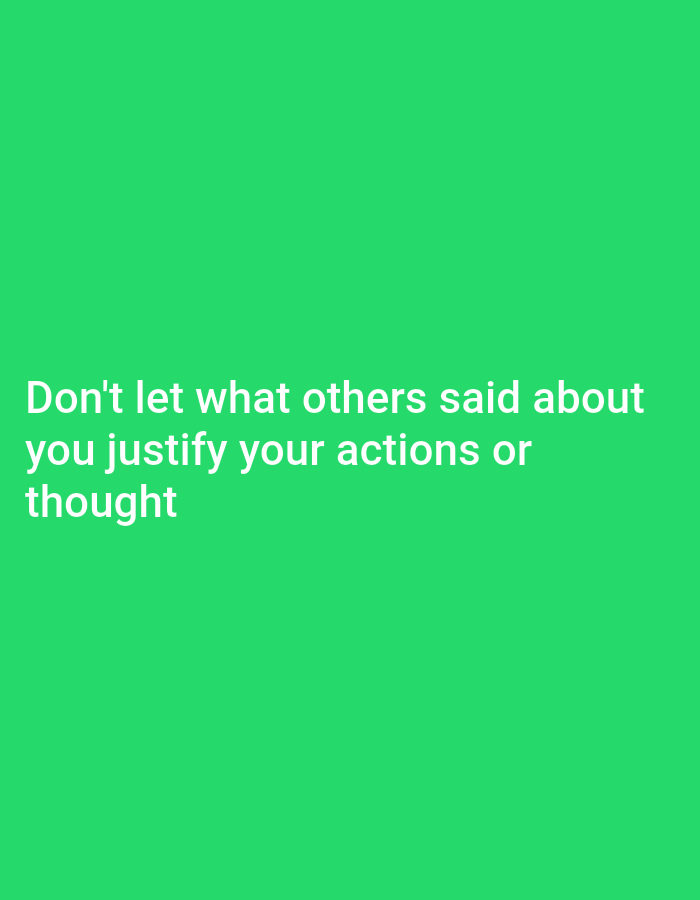 A green background displays white text that reads "Don't let what others said about you justify your actions or thought"