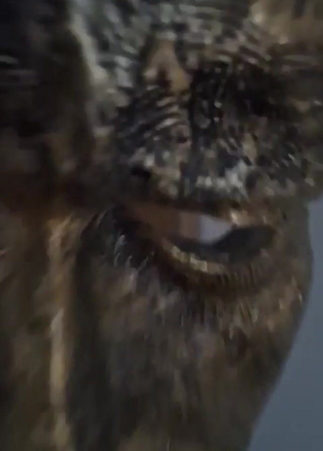 The video reveals a close-up shot, initially dark and out of focus, that gradually reveals a golden-colored statue of a human figure