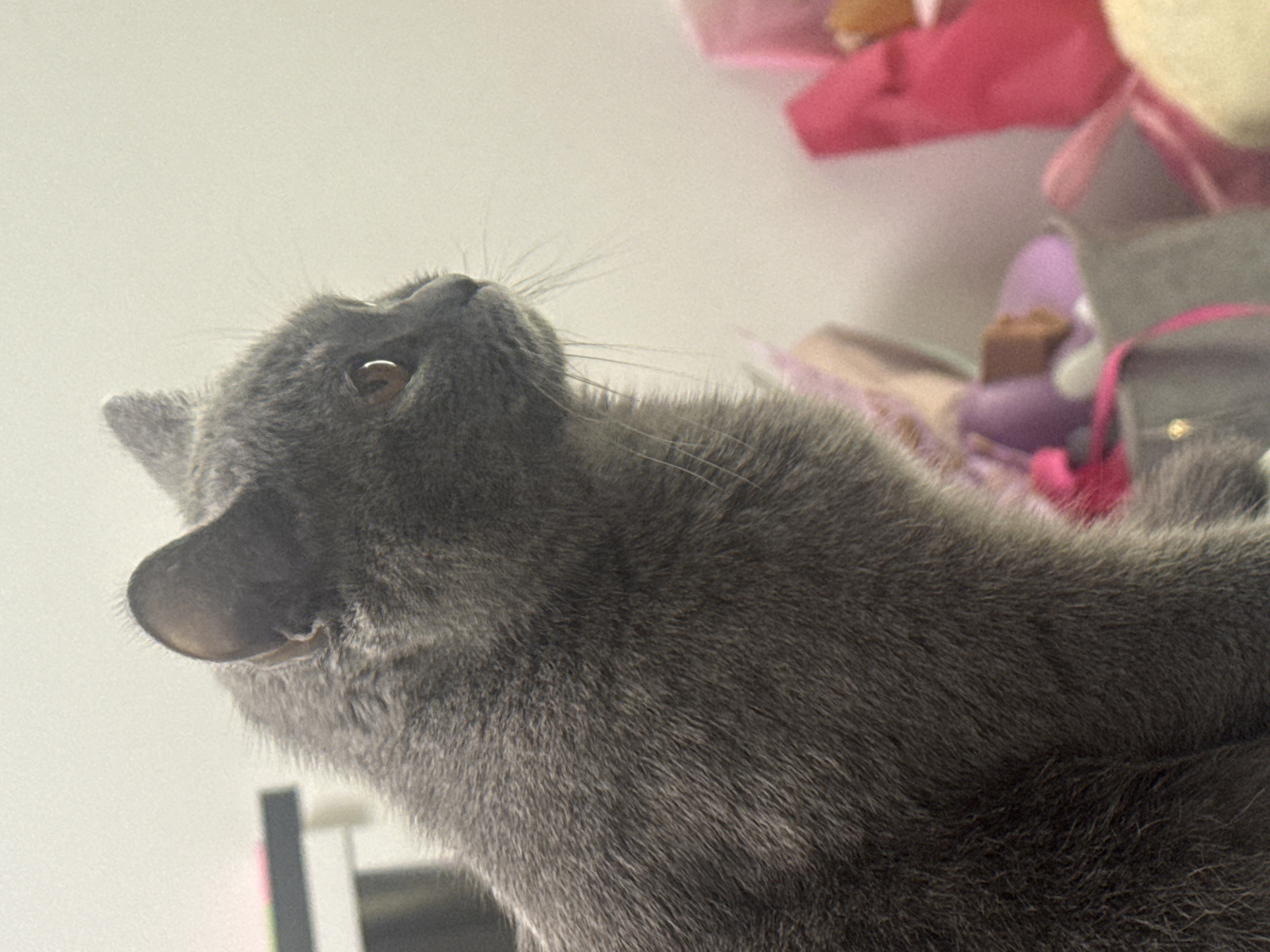 - "A grey domestic shorthair cat is depicted in a profile view, positioned towards the left of the frame and facing right" by FM-OAANt1, licensed under CC BY 4.0