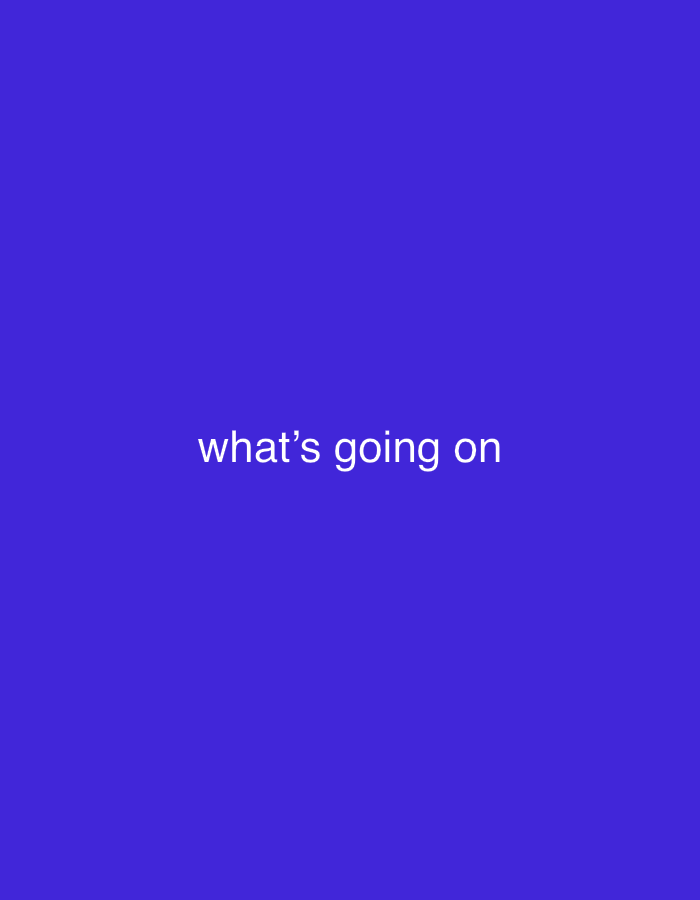 The image displays a solid royal blue background. Centered horizontally and vertically within the frame is white, sans-serif text reading "what's going on." There are no individuals, subjects, objects, actions, interactions, or environmental details depicted. The image contains no visual information to indicate a specific geographical location, including the city of Umuode, Nigeria.