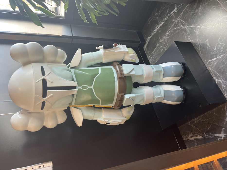 - "A KAWS Companion art figure, stylized as the Star Wars character Boba Fett, stands centrally in an interior space in Mondeville, France" by FM-RPGCC2, licensed under CC BY 4.0