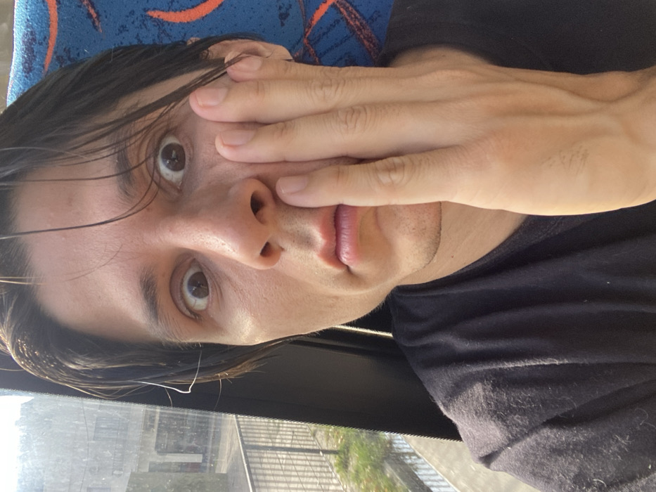 - "An adult male with dark, damp-appearing hair and light-to-medium skin tone is captured in a close-up selfie, seated within a vehicle" by FM-faLbl2, licensed under CC BY 4.0