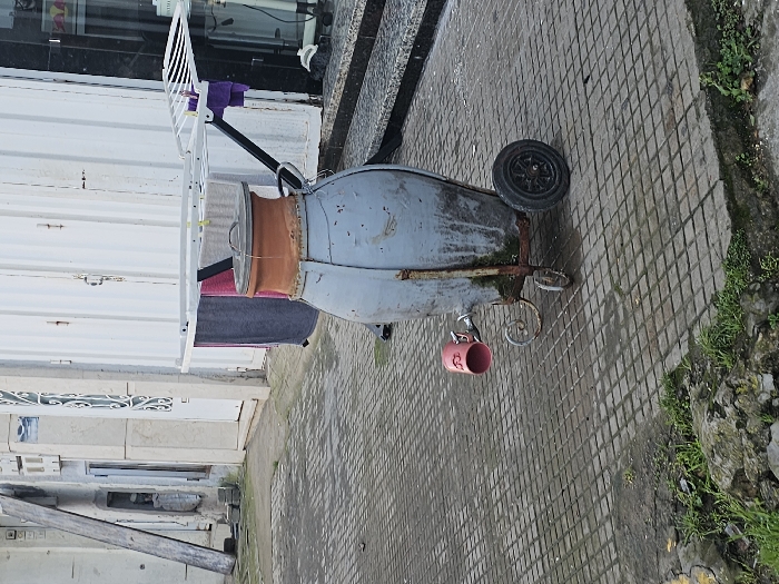 - "This image, captured in Salé, Morocco, presents an outdoor scene dominated by a repurposed, wheeled metal container serving as an improvised drying station" by FM-HWmcZ2, licensed under CC BY 4.0