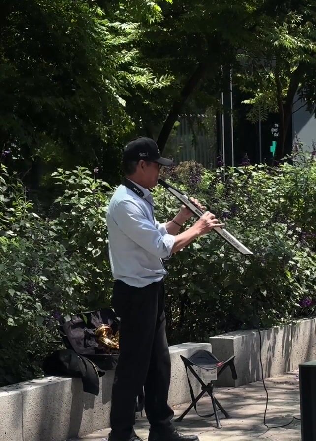 - "A man plays a wind instrument in a park" by FM-TOclH2, licensed under CC BY 4.0