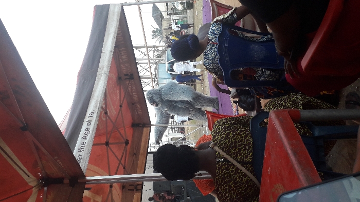 An outdoor scene in Agukwu Nri, Nigeria, captured from under a red tent structure