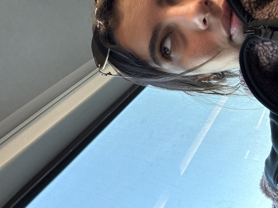 - "The image depicts a partial close-up of a female individual inside a vehicle, likely a train or bus, in Secaucus, United States" by FM-4vhV22, licensed under CC BY 4.0
