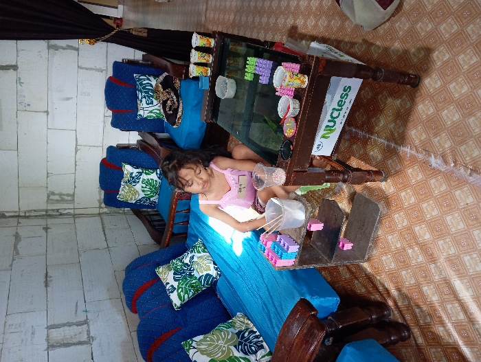 - "A young girl sits on a blue patterned couch, playing with small toys on a nearby wooden table" by FM-TnUEx2, licensed under CC BY 4.0