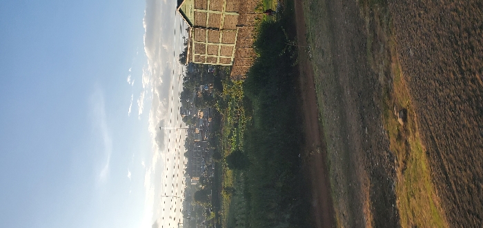 The image captures an outdoor panorama in Limuru Central ward, Kenya, under a bright blue sky with scattered white cumulus clouds
