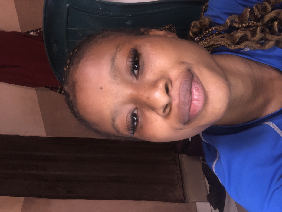 A headshot of a young adult female, of African descent, is depicted indoors in Dutsinma B, Nigeria