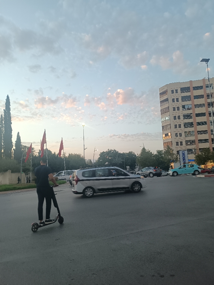 - "The image depicts a street scene in Meknes, Morocco, under a partially cloudy sky with light pink and orange hues suggesting late afternoon or early evening" by FM-8A33E3, licensed under CC BY 4.0