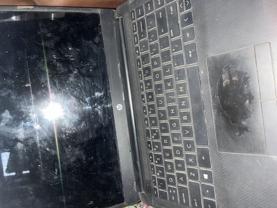 A black HP laptop is depicted in a close-up, top-down perspective within Sabon Gari East, Nigeria