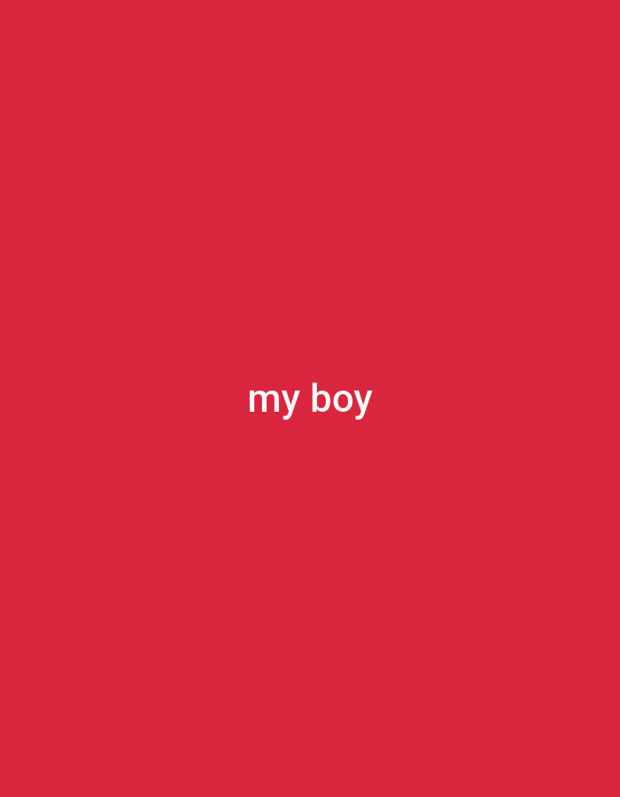 The image contains the text "my boy" in white lettering against a solid red background
