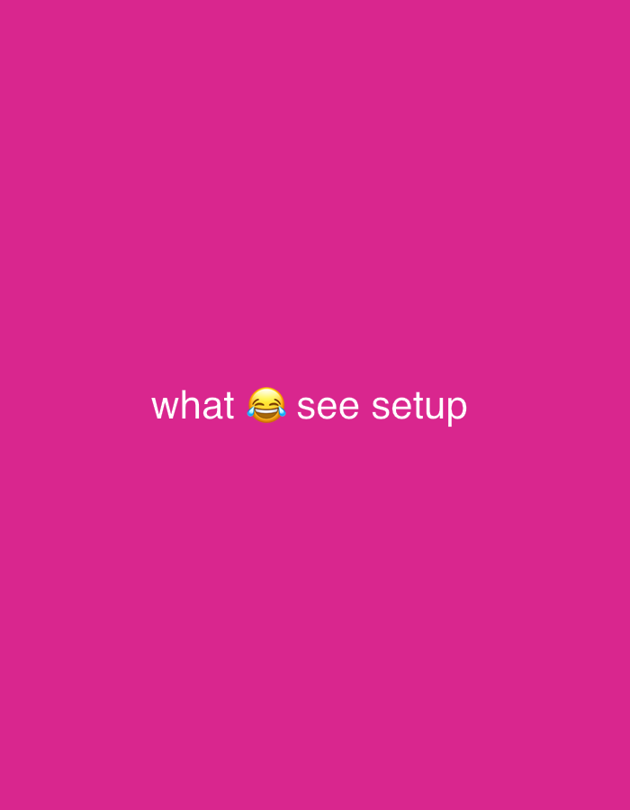 This image, located in Ipsos, Greece, presents a solid magenta background. Centrally positioned, white sans-serif text reads "what" immediately followed by a yellow "Loudly Crying Face" emoji, and then "see setup". No individuals, additional objects, or discernible environmental features are present within the frame. The scene is two-dimensional and static.