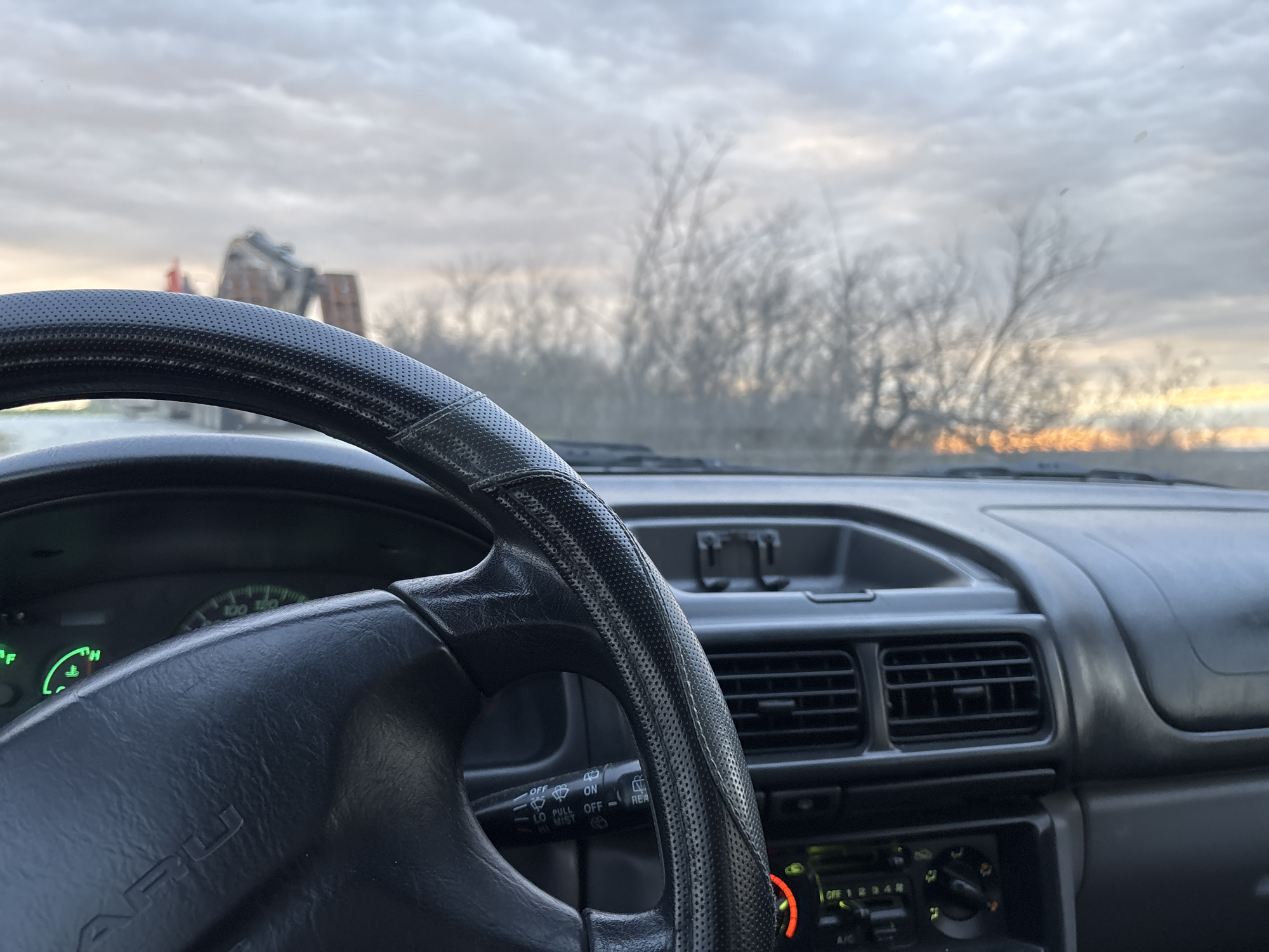 - "A view from the interior of a Subaru car, focusing on the steering wheel and dashboard, with an external view visible through the windshield" by FM-vLEav1, licensed under CC BY 4.0