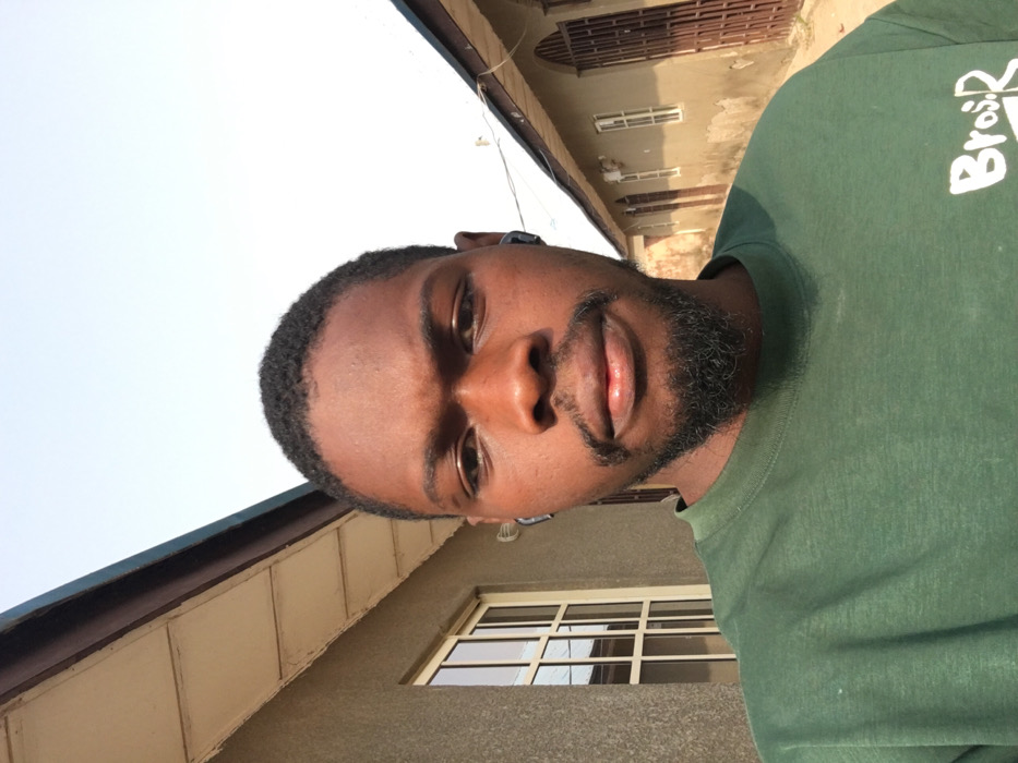 The image displays an adult male of dark complexion, centered and looking directly forward
