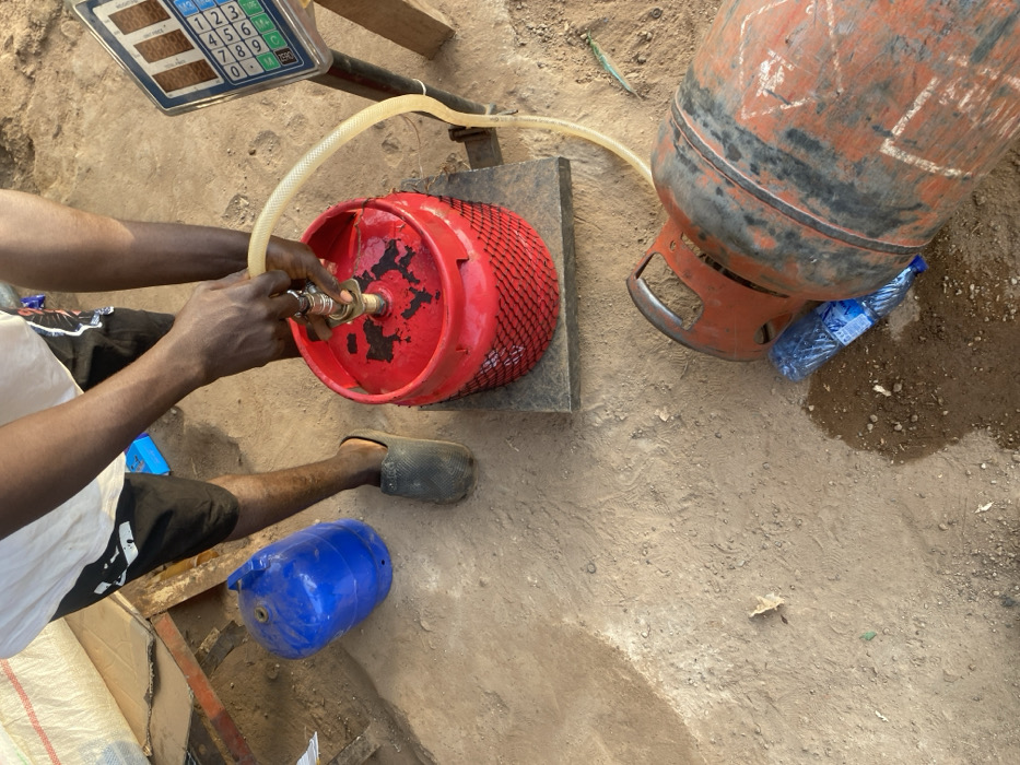 - "A person is filling a red propane tank from a larger orange propane tank using a clear hose" by FM-8Yh6N2, licensed under CC BY 4.0