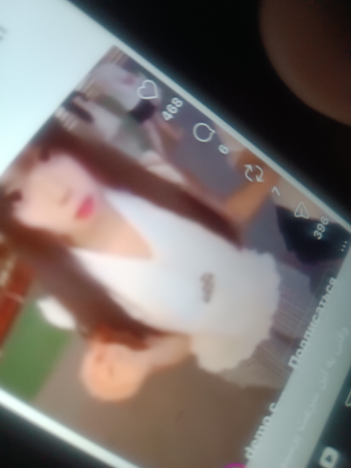 A blurry image of a phone screen displays what appears to be a social media video. The video features a person with long hair wearing a white top. Overlayed on the video are social media engagement icons. A heart icon with the number "468" indicates the number of likes, a comment icon, and a share icon with the number "7". A number "396" appears at the bottom right. The text "Подписаться" (Subscribe) is visible, along with other text at the bottom of the screen.