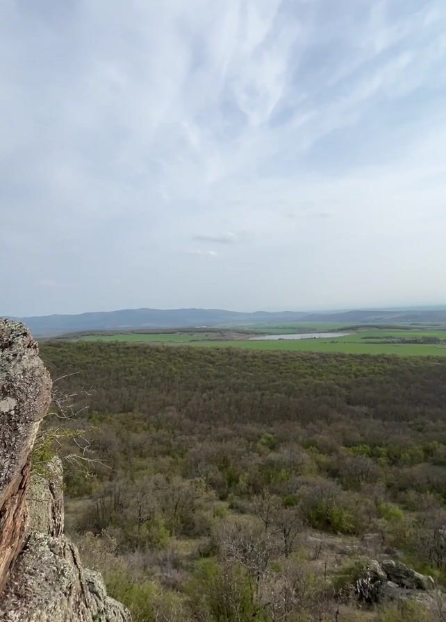 panoramic view from atop a rocky cliff overlooking a vast landscape