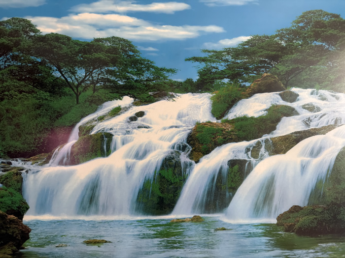 - "The image displays a vibrant, idealized natural landscape featuring multiple tiered waterfalls cascading into a tranquil body of water" by FM-5OFyo1, licensed under CC BY 4.0
