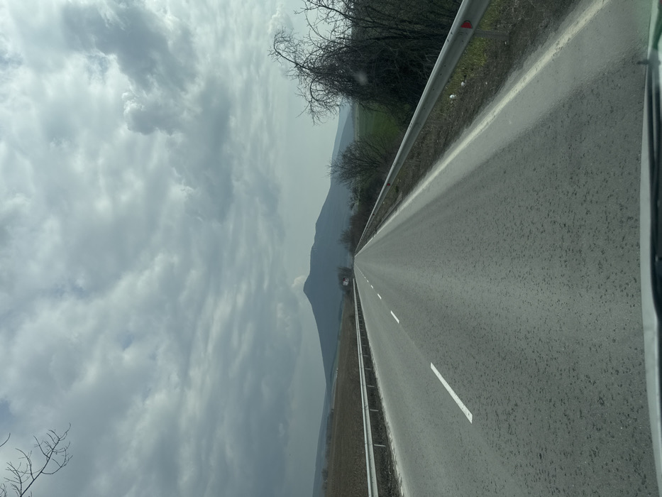 - "An asphalt two-lane road extends into the distance under an overcast sky, viewed from within a vehicle" by FM-Gf6gR2, licensed under CC BY 4.0