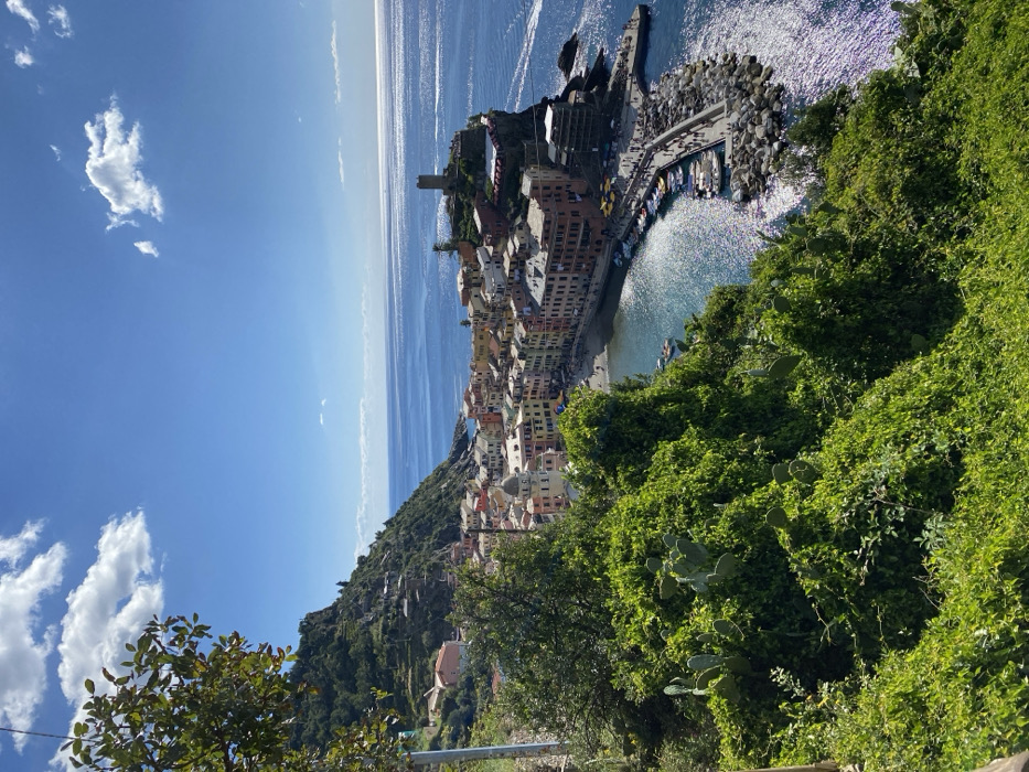- "This high-angle image captures the coastal town of Vernazza, Italy, under a clear blue sky with scattered white clouds" by FM-GMXqP2, licensed under CC BY 4.0