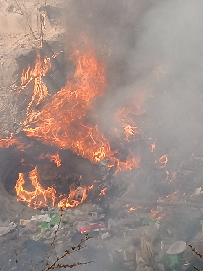 - "A photograph taken in Zango-ndaji, Nigeria, depicts an outdoor scene dominated by a substantial fire consuming miscellaneous waste material" by FM-F0FtQ2, licensed under CC BY 4.0