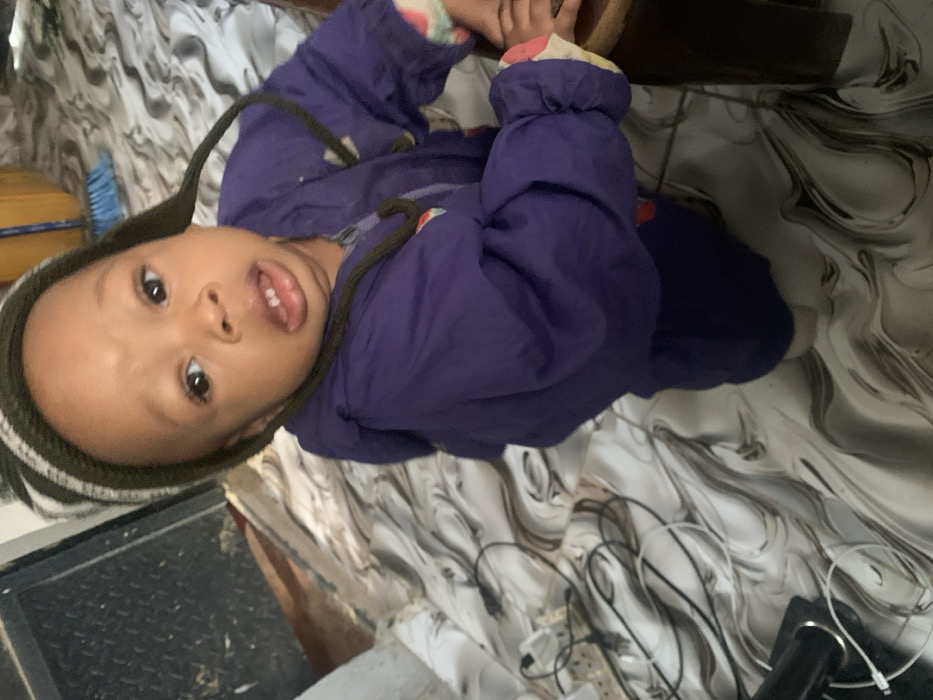 - "A child wearing a striped hat and a purple puffer jacket looks towards the camera, mouth slightly open revealing their teeth" by FM-96Vvh2, licensed under CC BY 4.0