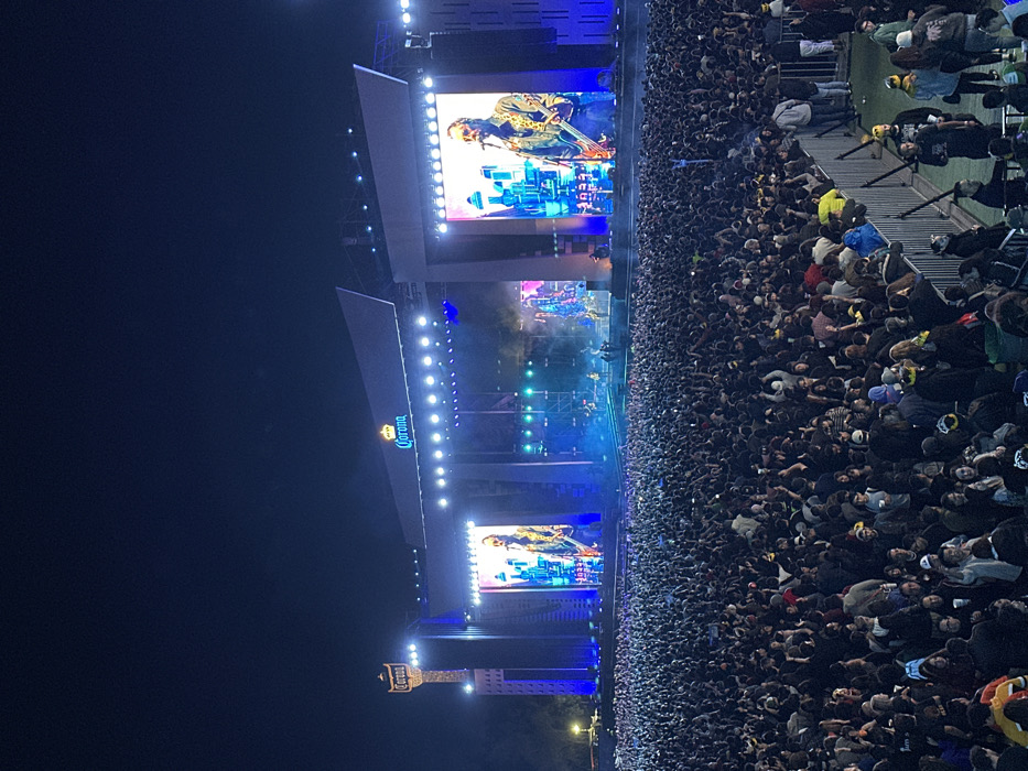 - "A large crowd faces a stage with screens displaying a performer" by FM-IS41v2, licensed under CC BY 4.0