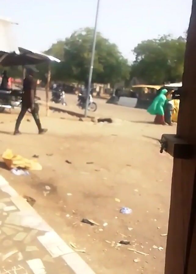 The scene appears to be a dusty outdoor area, possibly a street or marketplace in a sunny location
