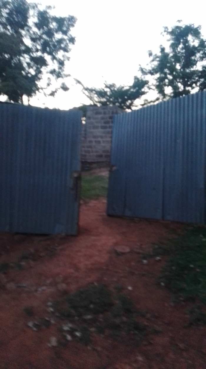 The image captures an outdoor scene in Siaya Township ward, Kenya, focusing on an open gateway